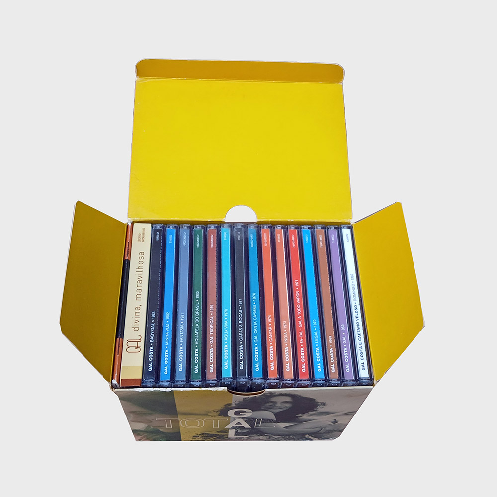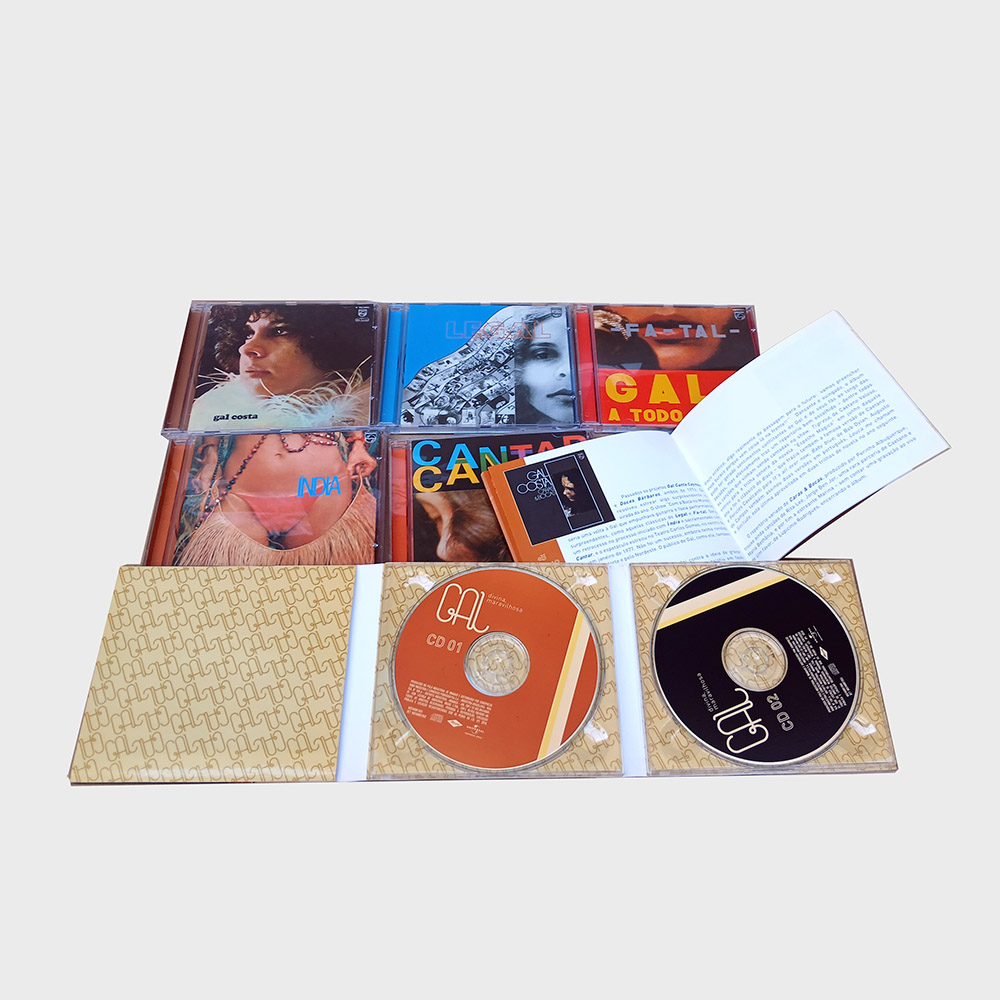 Caixa com 17 CDs, sendo quinze álbuns de estúdio, um bônus duplo com raridades mais livreto, contemplando a carreira de Gal Costa na Universal. Produto usado em perfeito estado,  tanto encartes como mídias, apenas a caixa externa com poucas marcas.