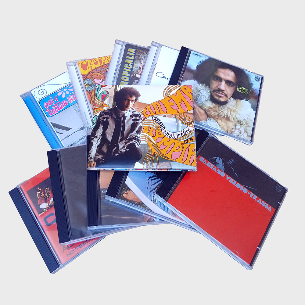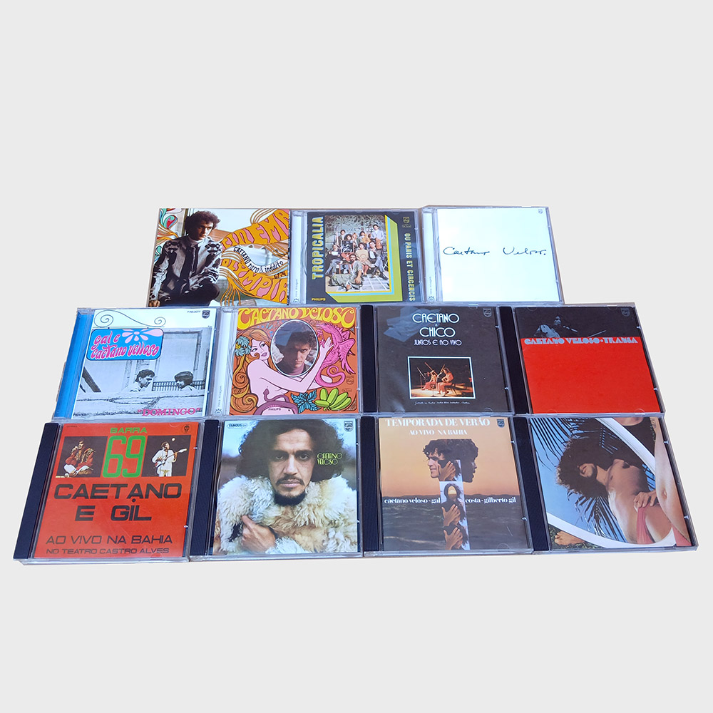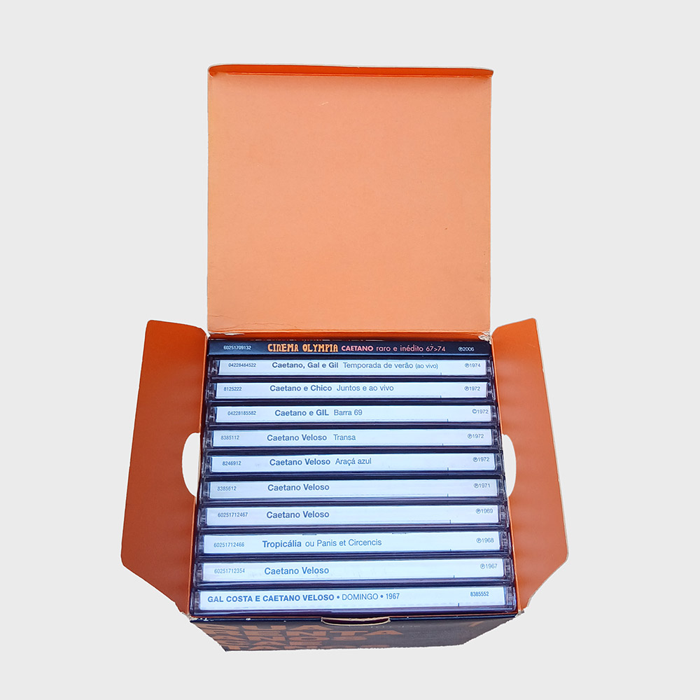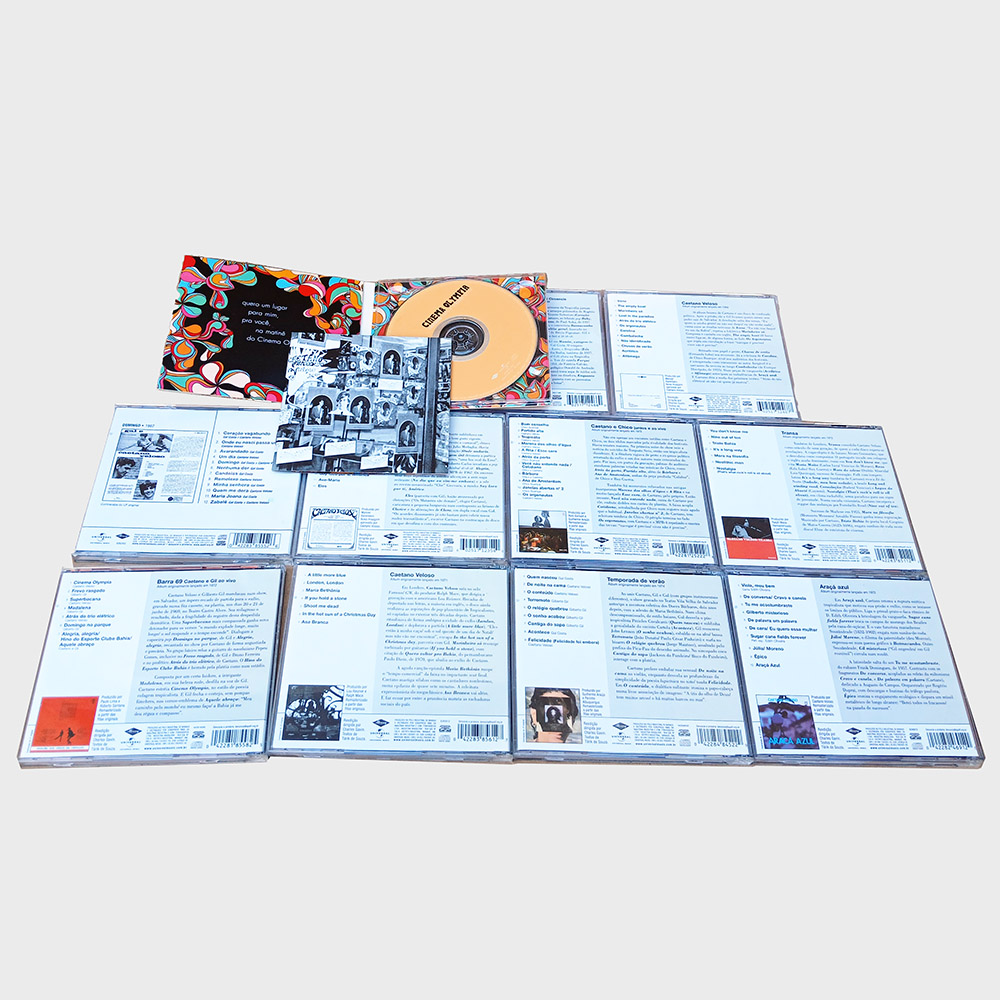 Caixa com onze CDs, sendo dez álbuns de estúdio mais um bônus com raridades, contemplando os anos de 1967 a 1974 da carreira de Caetano Veloso. Produto usado em perfeito estado,  tanto encartes como mídias, apenas a caixa externa com poucas marcas.